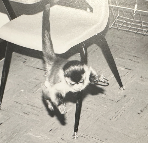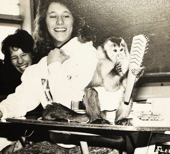 Mr. Ryder, being the good guy that he was, readily OK’d the plan.   Honestly, he was visually excited to have a little monkey-time himself during his otherwise relatively boring, day-long routines. So it was a go. The kids couldn’t wait. Me either! Phyllis (the really cool wife of the now-really-cool English teacher) dropped him off mid-morning. And what a day we were to have.